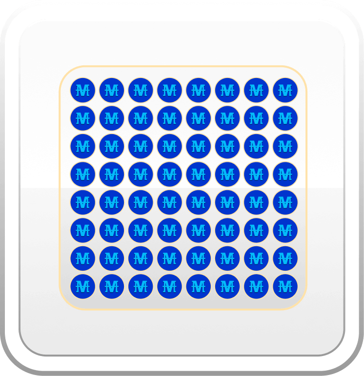 Coin Rush se juega en un tablero de 8x8 lleno de monedas, cada una de ellas con un premio multiplicador.