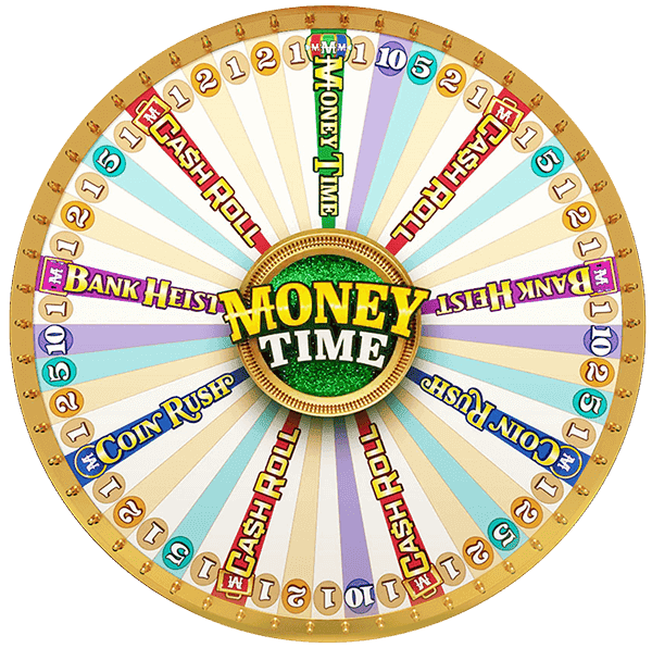 Money Time (el juego de bonificación) se juega en una cámara acorazada dorada con una ruleta gigante de 54 segmentos y tres secciones coloreadas: azul, roja y verde. Cada sección coloreada contiene premios multiplicadores y símbolos de Tirada adicional.